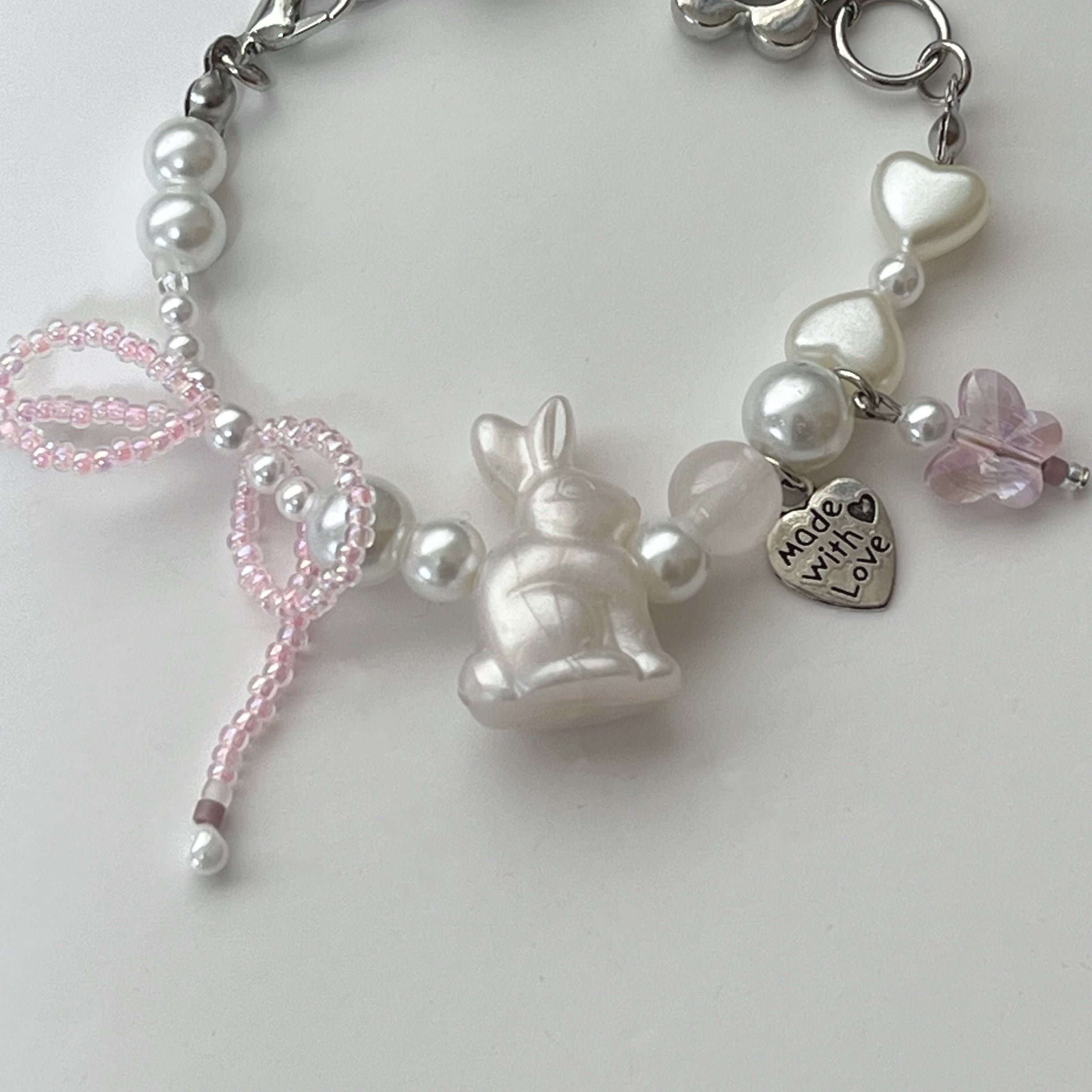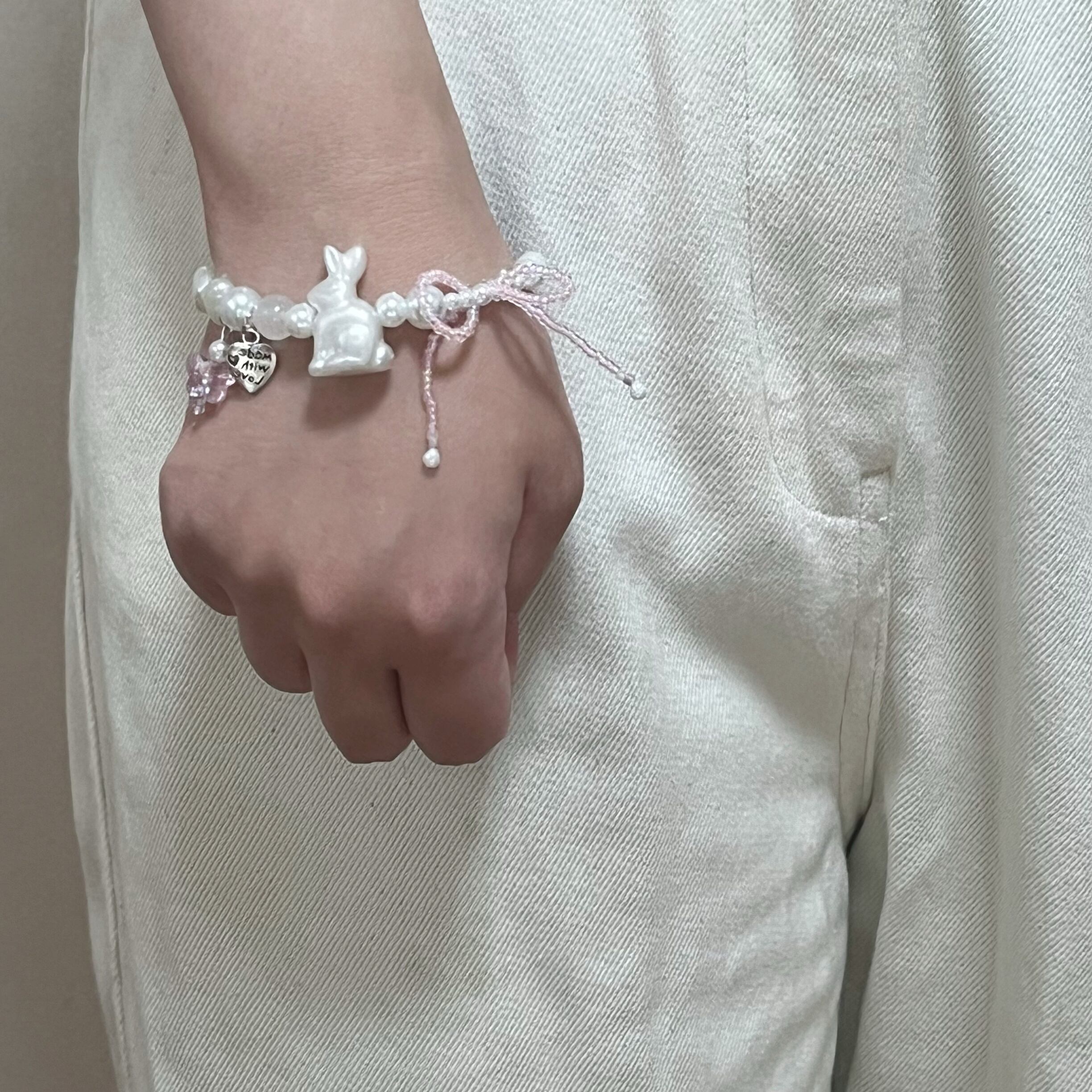 うさぎ・お花・パール・リボン・蝶々など最大のかわいいを♡ さりげなくハートで見立てたリボンがポイントです!